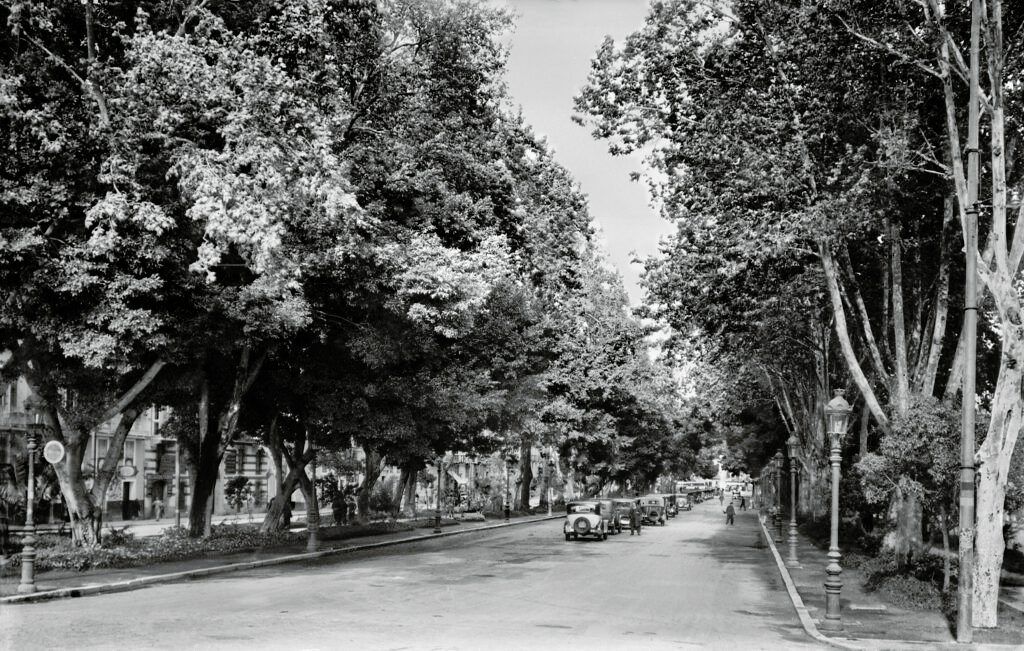 En 1924, el Monumento al Marqués de Larios ya se había consolidado como un icono del paisaje urbano malagueño. Ese mismo año, el Ayuntamiento decidió crear una rotonda a su alrededor para ordenar el creciente tráfico, señalando así un cambio en la función del espacio. Solo un año después, en 1925, la hasta entonces peatonal Alameda Principal dio un giro definitivo: se abrió al tránsito rodado bajo el nombre de Avenida de Alfonso XIII. Esta decisión marcó el inicio de una nueva etapa, en la que la histórica avenida dejó de ser solo lugar de paseo para convertirse también en eje vertebrador de la movilidad urbana malagueña.