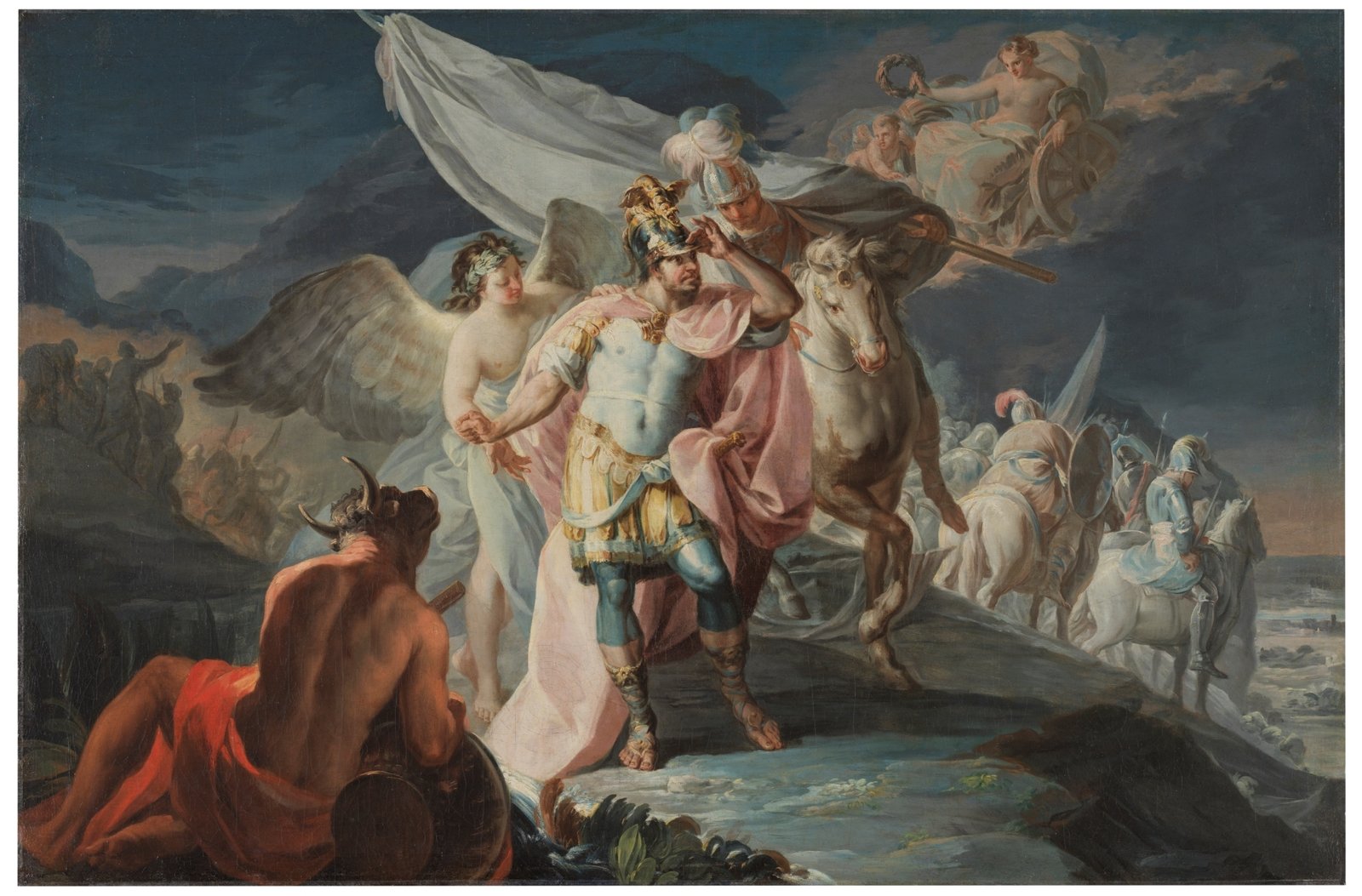 1771 será un año importante ya que es cuando envió a la Academia de Parma un lienzo ambicioso, «Aníbal vencedor que por primera vez mira Italia desde los Alpes», con el que obtuvo una mención honorífica que incluso fue destacada por el Mercure de France al año siguiente. De vuelta a España, entre mayo y julio de 1771, recibió su primer gran encargo: pintar el fresco del coreto de la basílica del Pilar de Zaragoza, «La adoración del nombre de Dios«.